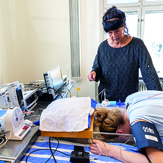 The sign on the door of the small room says ”Extreme Physiology Lab”. It is in one of the yellow buildings that make up Mid Sweden University’s campus in Östersund. Attached to my fingers are various meters that register my heart rate, blood pressure, blood flow and more. The electrodes on my back measure my ECG, the heart’s electrical signals, and the carbon dioxide level in my blood through my skin.
