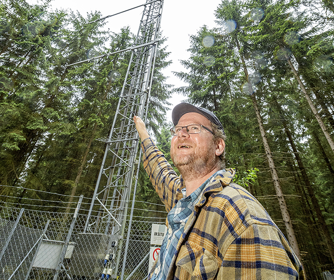 I norra Skåne är en vanlig svensk granskog fullproppad med mätutrustning. På Lunds...